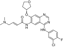 Afatinib, sold under the brand name Gilotrif among others, is a medication used to treat non-small cell lung carcinoma (NSCLC).[1][2][3] It belongs to the tyrosine kinase inhibitor family of medications.[4] It is taken by mouth.[4]