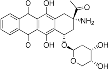 Amrubicin (INN; previously known as SM-5887) is an anthracycline used in the treatment of lung cancer.[1] It is marketed in Japan since 2002 by Sumitomo under the brand name Calsed.[2]