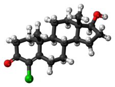 Clostebol is a weak AAS with potential use as a performance enhancing drug. It is currently banned by the World Anti-Doping Agency.[2] Chlorodehydromethyltestosterone (Oral Turinabol), combining the chemical structures of clostebol and metandienone, was widely used in the East German state-sponsored doping program.[3]