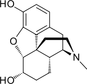 Dihydromorphine (Paramorfan, Paramorphan) is a semi-synthetic opioid structurally related to and derived from morphine. The 7,8-double bond in morphine is reduced to a single bond to get dihydromorphine.[1] Dihydromorphine is a moderately strong analgesic and is used clinically in the treatment of pain and also is an active metabolite of the analgesic opioid drug dihydrocodeine.[2][3][4] Dihydromorphine occurs in trace quantities in assays of opium on occasion, as does dihydrocodeine, dihydrothebaine, tetrahydrothebaine, etc. The process for manufacturing dihydromorphine from morphine for pharmaceutical use was developed in Germany in the late 19th Century, with the synthesis being published in 1900 and the drug introduced clinically as Paramorfan shortly thereafter. A high-yield synthesis from tetrahydrothebaine was later developed.[5]