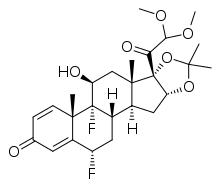 | Other names | RS-40584; 6α,9α-Difluoro-11β,16α,17α-trihydroxy-3,20-dioxopregna-1,4-dien-21-al 21-(dimethyl acetal) cyclic 16,17-acetal with acetone; 6α,9α-Difluoro-11β-hydroxy-21,21-dimethoxy-16α,17α-((1-methylethylidene)- bis(oxy))pregna-1,4-diene-3,20-dione |