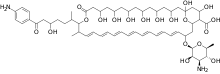 Hamycin is a pair polyene antimycotic organic compounds described in India.[1] It is a heptaene antifungal compound rather similar in chemical structure to amphotericin B except that it has an additional aromatic group bonded to the molecule. When pure, hamycin is a yellow, powdered solid. There are two versions of hamycin with very similar chemical structures: hamycin A and hamycin B.[2]