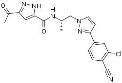Ketodarolutamide (developmental code names ORM-15341, BAY-1896953) is a nonsteroidal antiandrogen (NSAA) and the major active metabolite of darolutamide (ODM-201, BAY-1841788), an NSAA which is used in the treatment of prostate cancer in men.[2][3][4][5] Similarly to its parent compound, darolutamide acts as a highly selective, high-affinity, competitive silent antagonist of the androgen receptor (AR).[2][3][4][5] Both agents show much higher affinity and more potent inhibition of the AR relative to the other NSAAs enzalutamide and apalutamide, although they also possess much shorter and comparatively less favorable elimination half-lives.[2][3][4][5] They have also been found not to activate certain mutant AR variants that enzalutamide and apalutamide do activate.[2][3][4][5] Both darolutamide and ketodarolutamide show limited central nervous system distribution, indicating peripheral selectivity, and little or no inhibition or induction of cytochrome P450 enzymes such as CYP3A4, unlike enzalutamide and apalutamide.[2][3][4][5]