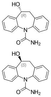 ![]() Top: (R)-(−)-licarbazepine Bottom: (S)-(+)-licarbazepine | |
