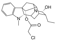 Lorajmine (17-monochloroacetylajmaline) is a drug that is a potent sodium channel blocker (more specifically, a class Ia antiarrhythmic agent) that was used for treating arrhythmia.[1][2] It is derived from ajmaline, an alkaloid from the roots of Rauwolfia serpentina, by synthetically adding a chloroacetate residue.