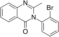 Mebroqualone (MBQ) is a quinazolinone-class GABAergic and is an analogue of mecloqualone that has similar sedative and hypnotic properties to its parent compound, resulting from its agonist activity at the β subtype of the GABAa receptor. It was originally synthesized in the 1960s[1] Mebroqualone differs from mecloqualone by having a bromine atom instead of a chlorine on the 3-phenyl ring. It was made illegal in Germany in 1998 but little other information is available. It would appear that this compound was sold on the black market in Germany as a designer drug analogue of mecloqualone.[2]