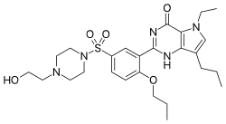 Mirodenafil belongs to the drug class PDE5 inhibitors, which includes avanafil, sildenafil, tadalafil, udenafil, and vardenafil, and is the first-line treatment for erectile dysfunction. Developed by SK Chemicals Life Science, mirodenafil is marketed in Korea under the trade name Mvix, offered both as tablets (50 mg and 100 mg) and as orally dissolving film (50 mg).