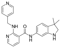 Motesanib (AMG 706) is an experimental drug candidate originally developed by Amgen[1] but later investigated by the Takeda Pharmaceutical Company. It is an orally administered small molecule belonging to angiokinase inhibitor class which acts as an antagonist of VEGF receptors, platelet-derived growth factor receptors, and stem cell factor receptors.[2] It is used as the phosphate salt motesanib diphosphate. After clinical trials in thyroid cancer, non-small cell lung cancer, gastrointestinal stromal cancer, colorectal cancer, and breast cancer, the drug was not found to show sufficient efficacy for further development, and development was abandoned by Takeda.[3]