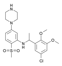 PRX-07034 is a selective 5-HT6 receptor antagonist.[1] It has cognition and memory-enhancing properties and potently decreases food intake and body weight in rodents.[1][2][3][4] PRX-07034 was under development by Epix Pharmaceuticals for the treatment of obesity and cognitive impairment associated with Alzheimer's disease and schizophrenia but upon the company collapsing due to lack of funds the compound was auctioned to another corporation.[5][6][6][7]
