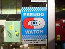 Many retailers in the US have created corporate policies restricting the sale of pseudoephedrine-containing products.[19][20] Their policies restrict sales by limiting purchase quantities and requiring a minimum age with proper identification. These requirements are similar to and sometimes more stringent than existing law. Internationally, pseudoephedrine is listed as a Table I precursor under the United Nations Convention Against Illicit Traffic in Narcotic Drugs and Psychotropic Substances.[21]