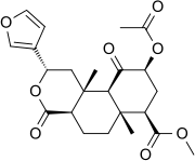 Salvinorin A is one of several structurally related salvinorins found in the Salvia divinorum plant. Salvinorin A seems to be the only naturally occurring salvinorin that is psychoactive.[35] Salvinorin A can be synthesized from salvinorin B by acetylation, and de-acetylated salvinorin A becomes analog to salvinorin B.[36]