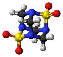 Tetramethylenedisulfotetramine (TETS) is an organic compound that is used as a rodenticide (rat poison).[2] It is an odorless, tasteless white powder that is slightly soluble in water, DMSO and acetone, and insoluble in methanol and ethanol. TETS is a sulfamide derivative. It can be synthesized by reacting sulfamide with formaldehyde under acidic condition.[3] When crystallized from acetone, it forms cubic crystals with a melting point of 255–260 °C.