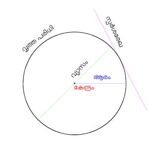 വൃത്തകേന്ദ്രത്തിൽ നിന്നും വൃത്തപരിധിയിലുള്ള ഏതൊരു ബിന്ദുവിലേയ്ക്കുമുള്ള അകലം തുല്യമായിരിയ്ക്കും.