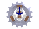 ചിത്രം മൂന്നിൽ, വൈദ്യുതോല്പാദനത്തിന്റെ ഒരു ലഘു ചലച്ചിത്രം നൽകിയിരിക്കുന്നു.ചിത്രത്തിലെ ചലിക്കുന്ന അസ്ത്രങ്ങൾ, കമ്പിച്ചുരുളുകളിൽ ഉല്പാദിക്കുന്ന വൈദ്യുതവോൾട്ടതടെ മൂല്യവും ദിശയും സൂചിപ്പിക്കുന്നു. കാന്തികക്ഷേത്രമുള്ള ഭ്രമണകം ബാഹ്യശക്തിയാൽ തിരിയുമ്പോൾ, കാന്തികക്ഷേത്രം, സ്ഥിതച്ചുരുളുകളിൽ വിദ്യുത്ചാലകബലം ഉണ്ടാക്കുന്നു. (ഒരു കാന്തികക്ഷേത്രത്തിൽ സ്ഥിതിചെയ്യുന്ന വൈദ്യുത വാഹിയിൽ, മണ്ഡലതീവ്രതയുടെ വ്യതിയാനം അനുസരിച്ച്, വൈദ്യുത സമ്മർദ്ദം ( Electrical Potential) അല്ലെങ്കിൽ വിദ്യുത്ചാലകബലം (Electromotive Force) സൃഷ്ടിക്കപ്പെടുമെന്നതാണ്, ഫാരഡെയുടെ വൈദ്യുതകാന്തികപ്രേരണതത്വം). അപ്രകാരം സൃഷ്ടിക്കപ്പെട്ട വൈദ്യുതസമ്മർദ്ദമാണ്, ബാഹ്യപഥത്തിൽ വൈദ്യുതപ്രവാഹത്തിന് കാരണമാകുന്നത്.