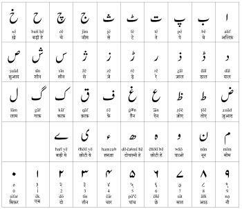 | వ్రాసే పద్ధతి: | ఉర్దూ అక్షరమాల (నస్తలీఖ్ లిపి) | |
