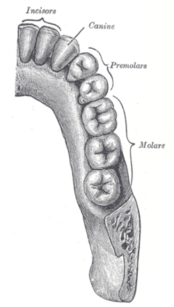| శాశ్వత దంతాలు, కుడి వైపు క్రింది దవడలోనివి. | |