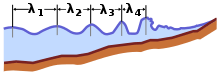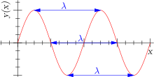 భౌతికశాస్త్రంలో, ఒక సినుసోయిడాల్ తరంగం యొక్క తరంగదైర్ఘ్యం తరంగ దూరం ప్రాదేశిక కాలం[1]. ఇది వేవ్ ఆకారం రిపీట్స్ పైగాఇది సాధారణంగా పైభాగాలు, ద్రోణులు, లేదా సున్నా క్రాసింగ్ల అదే దశ వరుస సంబంధిత బిందువుల మధ్య దూరం పరిగణలోకి ద్వారా నిర్ణయించబడుతుంది మరియు ఒక ప్రయాణిక తరంగాలు మరియు నిలబడి తరంగాలు రెండు లక్షణం, అలాగే ఇతర ప్రాదేశిక అల నమూనాలను ఉంది[2][3].తరంగదైర్ఘ్యం సాధారణంగా గ్రీకు అక్షరం లాంబ్డా ద్వారా నియమించబడిన (λ).భావనను కూడా కాని సినుసోయిడాల్ ఆకారం ఆవర్తన తరంగాలు అన్వయించవచ్చు[4].తరంగదైర్ఘ్యం యొక్క SI యూనిట్ మీటర్ల.తరంగదైర్ఘ్యం అటువంటి శిఖరాలు, లోయలు, లేదా సున్నా-క్రాసింగ్ల, ఎంత దూరం ఏ కణ ఎత్తుగడలు ఒక చర్యగా ఆకారం ఫీచర్ పునరావృత్తులు మధ్య దూరం కొలత. ఉదాహరణకు, సినుసోయిడాల్ తరంగాలలో లోతైన నీటిలో సంబంధంలేని అల ఎత్తు అదే వ్యాసం సర్కిల్లో నీటి ఉపరితలం కదలికలు సమీపంలో ఒక అణువు, తరంగదైర్ఘ్యం. ఒక వేవ్ ద్వారా ప్రయాణిస్తుంది తరంగదైర్ఘ్యం మీడియం ఆధారపడి (ఉదాహరణకు, వాక్యూమ్, గాలి, లేదా నీరు).[5] తరంగ విషయాలను ఉదాహరణలు ధ్వని తరంగాలు, కాంతి, మరియు నీటి కెరటాలు. కాంతి మరియు ఇతర విద్యుదయస్కాంత వికిరణం విద్యుత్ బలం మరియు అయస్కాంత క్షేత్రం మారుతూ అయితే ఒక ధ్వని తరంగం, గాలి పీడనం వ్యత్యాసం ఉంది. నీటి అలలు ఒక శరీరం నీటి ఎత్తు వైవిధ్యాలు ఉన్నాయి. ఒక క్రిస్టల్ లాటిస్ కదలిక లో, అణు స్థితిగతులలో మార్పు.