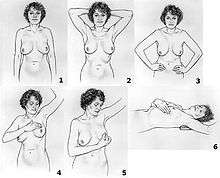 రొమ్ములో మార్పులు ఏమైనా ఉన్నదీ లేనిదీ తెసుసుకోవాలి. మొదటి భంగిమలో మీ రెండు చేతులను పైకి ఎత్తండి. రెండో భంగిమలో మీ చేతులను తుంటిపై పెట్టండి. మూడో భంగిమలో మీ రెండు చేతులను స్వేచ్ఛగా మీ ముందు భాగంలో వేలాడేటట్లు వదిలేయండి. ఈ మూడు భంగిమలను అద్దంలో చూస్తూ ఒక్కో రొమ్ములో ఈ క్రింద పేర్కొన్న మార్పులను గమనించండి.