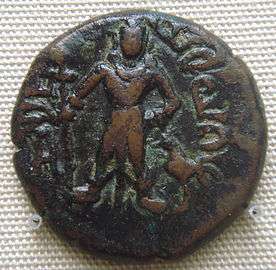 A coin from Yaudheya period depicting Muruga