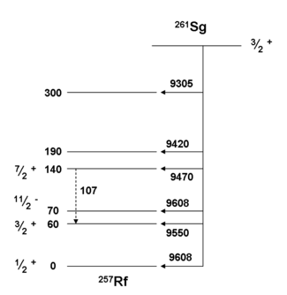 స్త్రేఇచేర్ 2003-2006 లో GSI వద్ద అధ్యయనం నుండి క్షయం పథకం ఈ 261Sg ప్రస్తుతం అంగీకరించారు.
