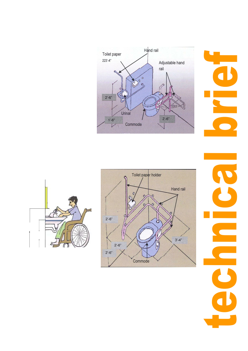 for easy access. A hand rail should be fixed around the wash basin to help the user to get the