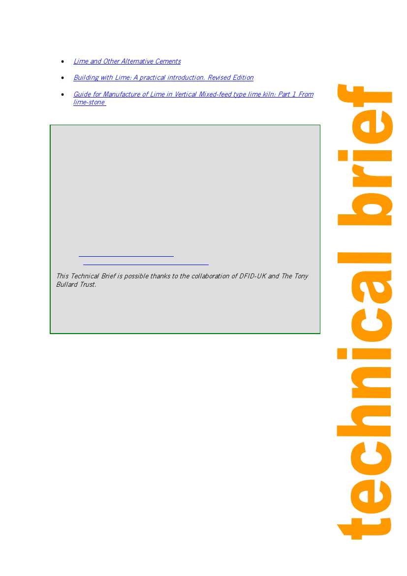 This Technical Brief is possible thanks to the collaboration of DFID-UK and The Tony