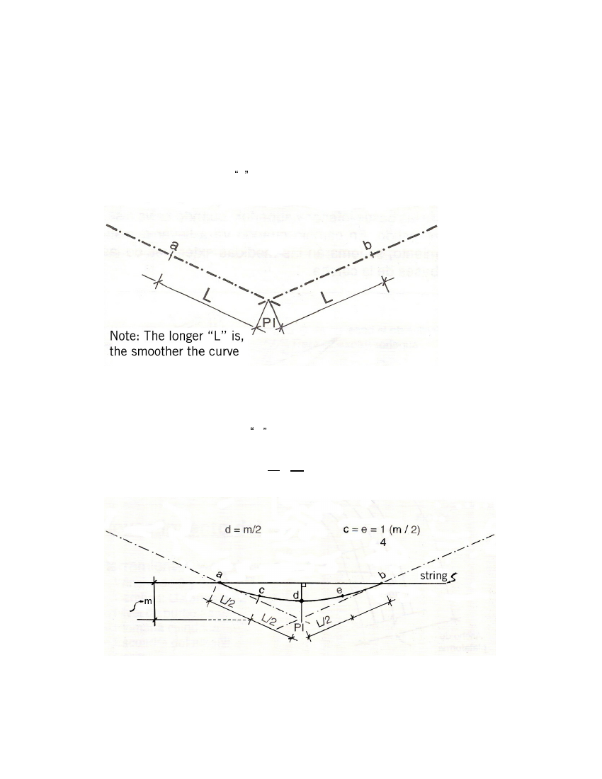 2. Determine points c, d, e, placing a taught rope between a and b.