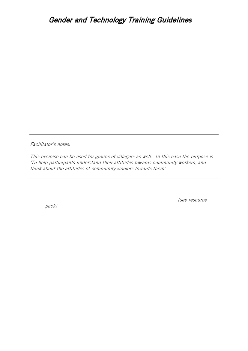 PURPOSE : To help participants examine their attitude towards villagers and think about