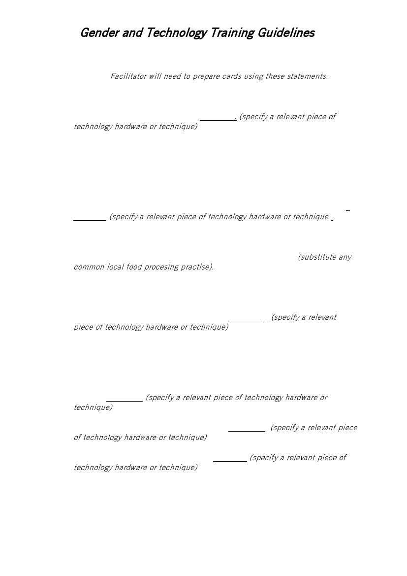 Gender and Technology Training Guidelines